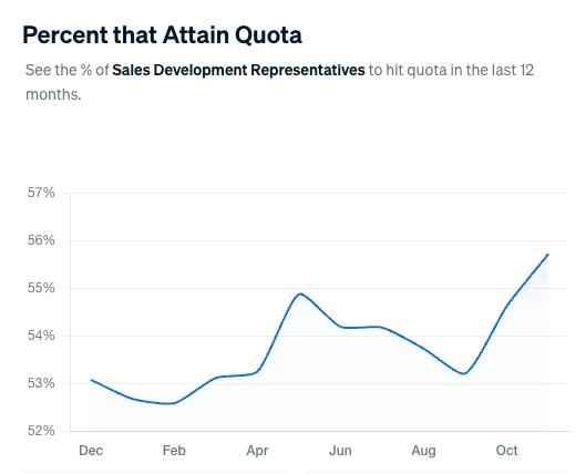 Current benchmark: Approximately 55.7% of ramped SDRs meet their quota (Repvue data, November 2024).