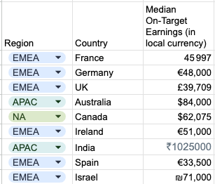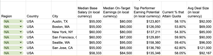 For EMEA, Canada, or APAC, use Glassdoor for more accurate median OTE data, as Repvue's data for these regions may be inflated.