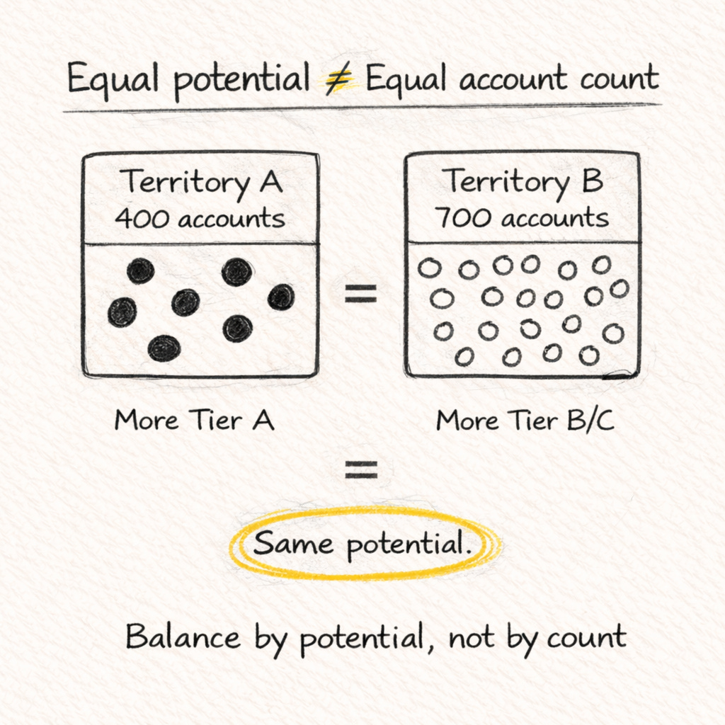 What: Create territories with equal potential, not equal account count.