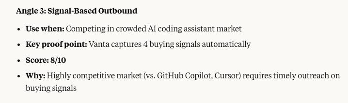 Good competitive market understanding in outbound angle