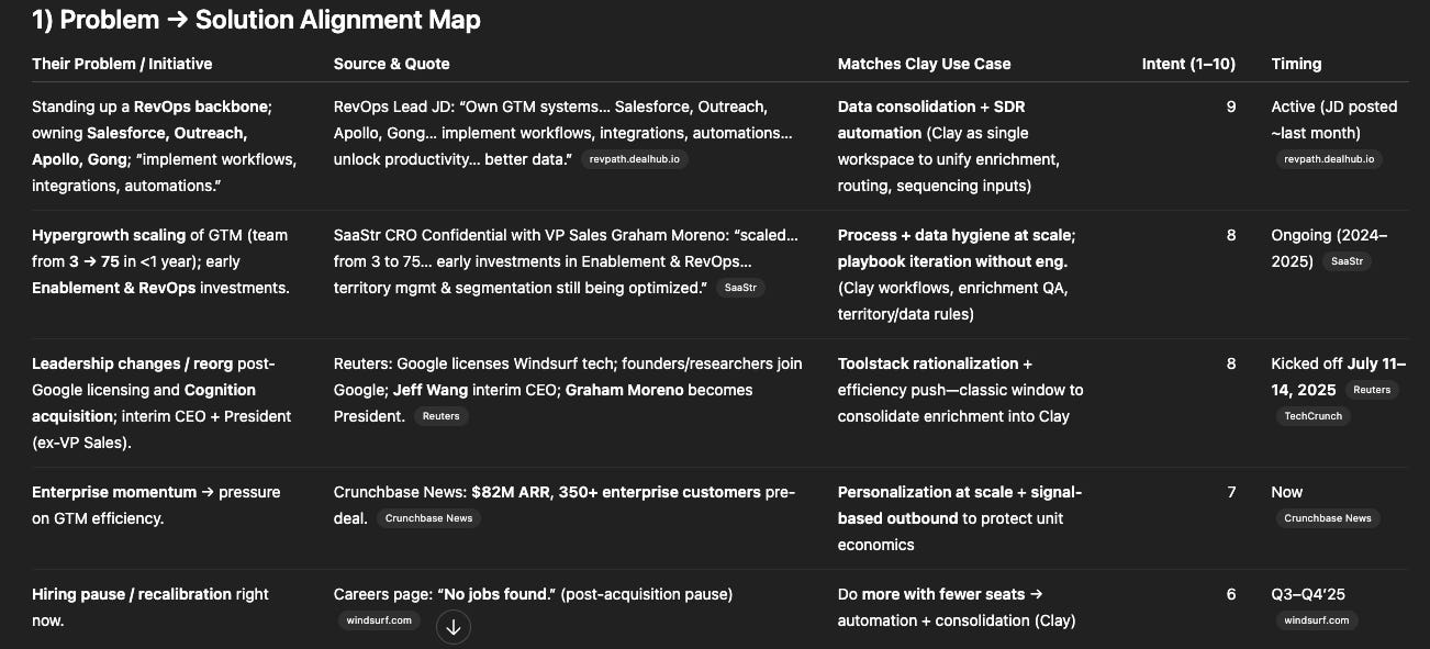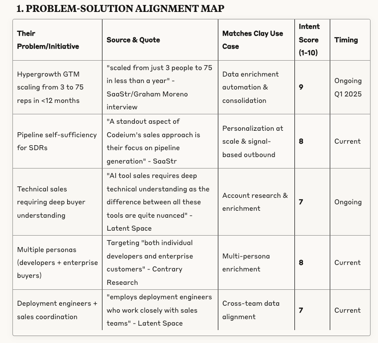 Problem-solution map not relevant to Clay's value prop
