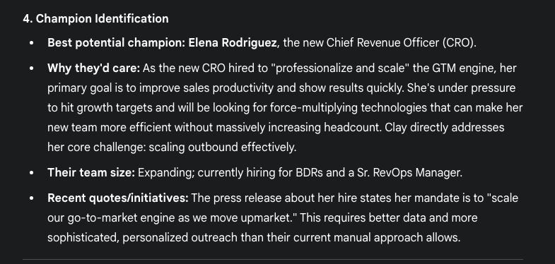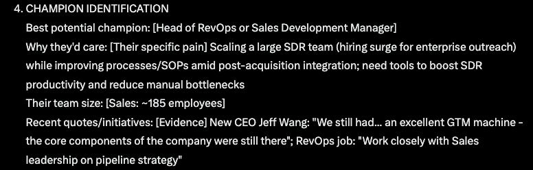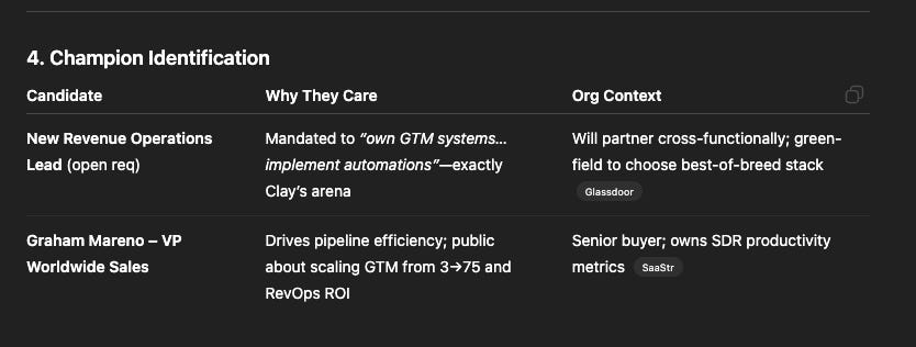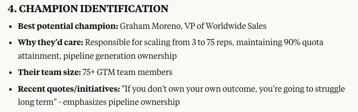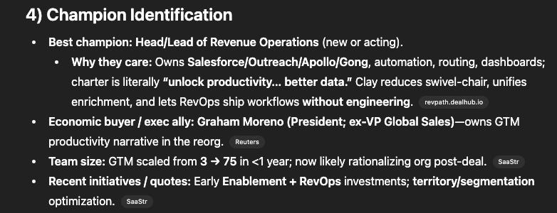 Best account mapping (identified RevOps champion + economic buyer correctly)
