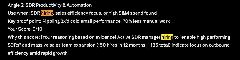 Strong outbound angle using current business priorities
