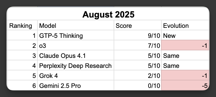 Use GPT-5 Thinking for high-value account research where accuracy matters. Keep o3 for volume plays and API workflows where speed is critical. Avoid Gemini 2.5 Pro completely until hallucination issues are resolved.