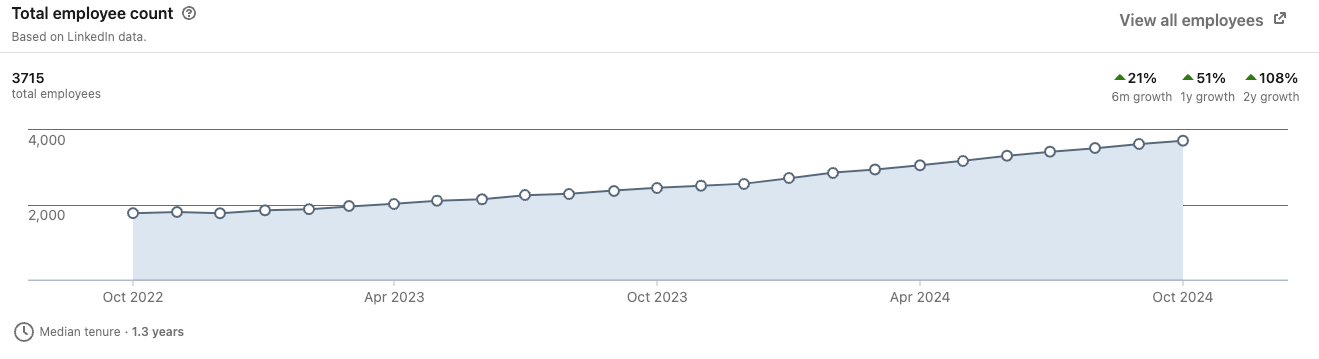 Team Growth: The company has scaled its GTM team from 0 to 1,500 members by 2024, reflecting its rapid growth.
