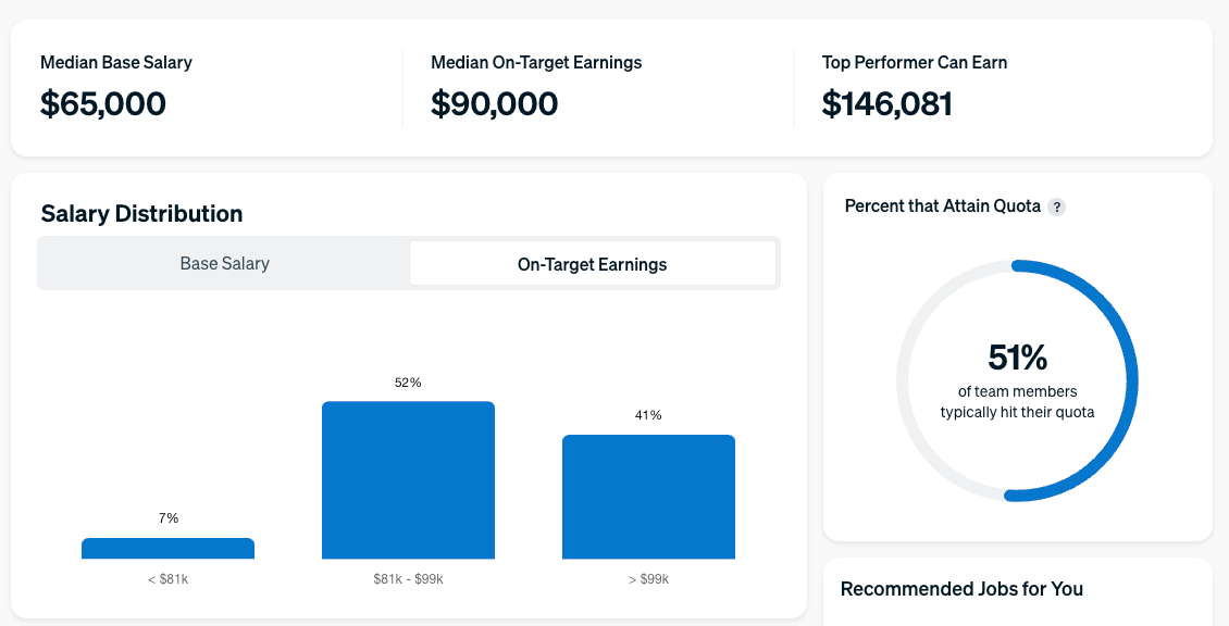 Total On-Target Earnings (OTE): Median in the U.S. is $90,000.