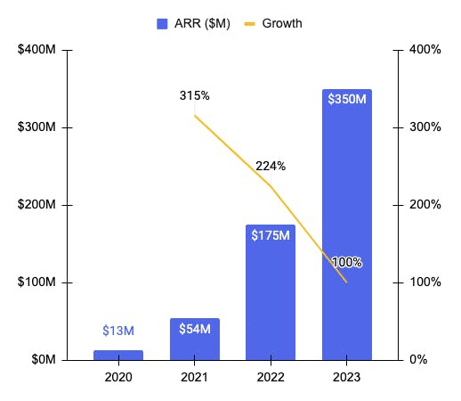 Revenue Expansion: Rippling doubled its ARR from $175 million in 2022 to $350 million in 2023, a remarkable 100% year-over-year growth.